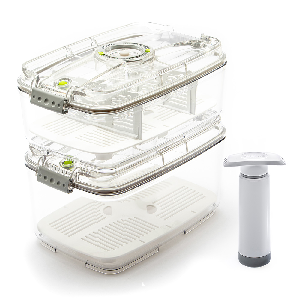 - Благодаря использованию вакуумных контейнеров, продукты не подвергаются внешнему воздействию и срок хранения значительно увеличивается. Продукты сохраняют свои вкусовые качества и аромат, а запахи в холодильнике не перемешиваются.